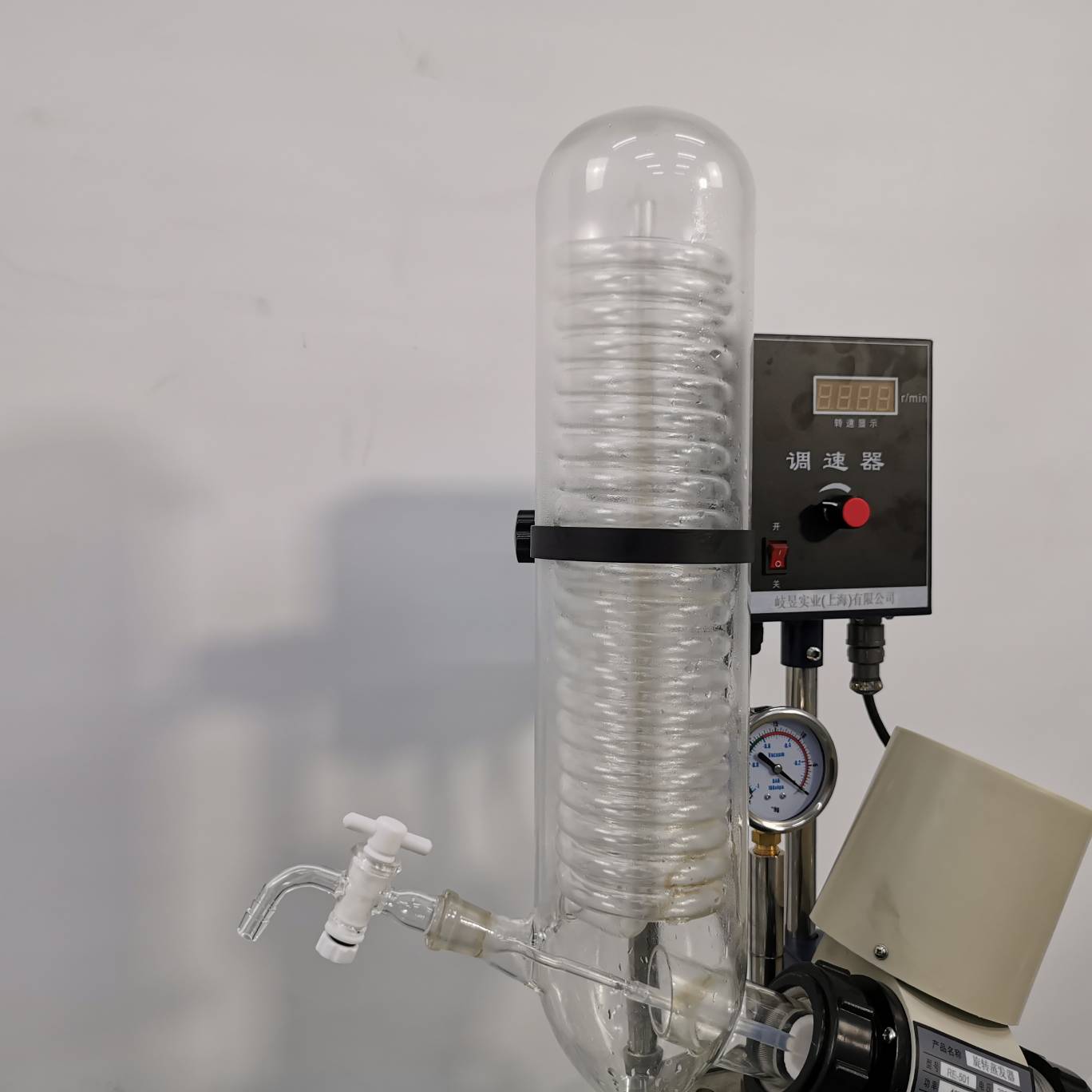 手動升降旋轉蒸發(fā)器-QYRE-5L 蒸發(fā)瓶恒速旋轉,水浴鍋恒溫加熱 物料在蒸發(fā)瓶內壁形成大面積均勻薄膜快速蒸發(fā),在真空條件下可以提高蒸發(fā)效率(配真空泵),溶媒蒸汽經玻璃冷凝盤管時冷卻成液體(冷媒),回收于收集瓶 需配套真空裝置