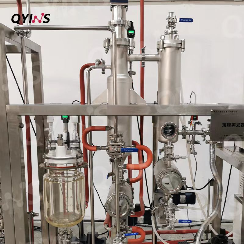 電子化學(xué)品行業(yè)用 不銹鋼分子蒸餾 專為熱敏性物料設(shè)計(jì)、高真空度、精準(zhǔn)控溫、操作溫度低 高硼硅玻璃夾套進(jìn)料罐+PTFE蓋。高硼硅玻璃夾套進(jìn)料罐,通過對(duì)夾套的控溫,可以對(duì)物料進(jìn)行預(yù)熱。