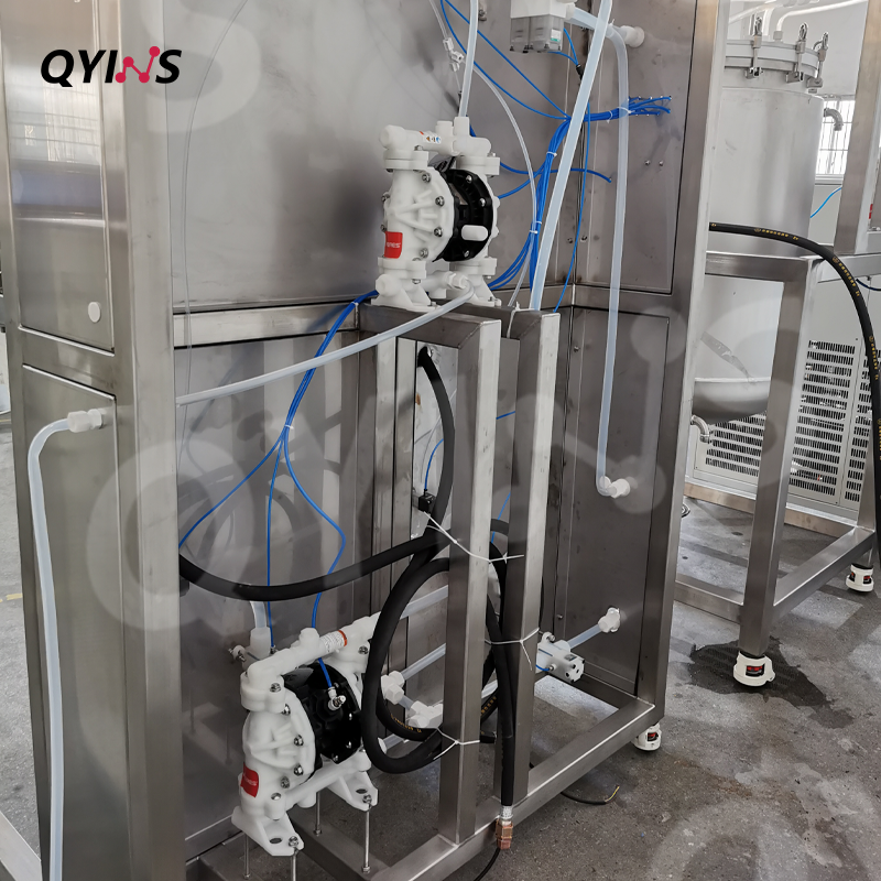 選用PP材質(zhì)氣動(dòng)隔膜泵,使用壓縮空氣作為動(dòng)力源,可以通過(guò)節(jié)流閥調(diào)節(jié)流量,適應(yīng)不同物料的輸送需求。